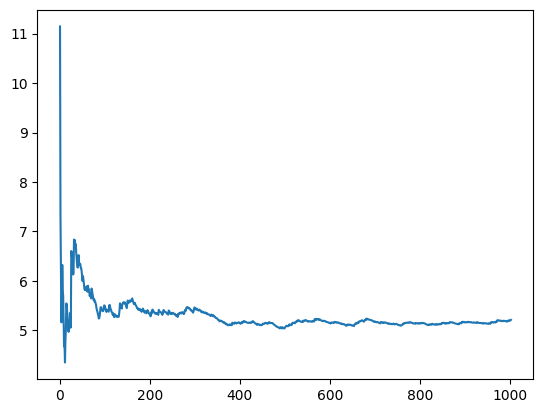 R = 1x = rng.exponential(5.3, size = (R, N))