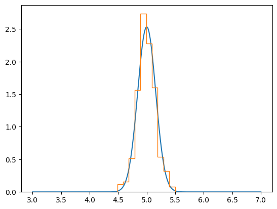 Nd = Normal(loc = B.mean(), scale = np.sqrt(B.var() / N))xx = np.linspace(3, 7, 201)