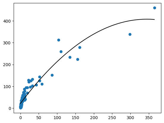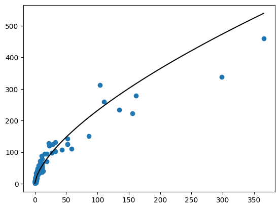 plt.plot(ndf["SW"], 10 ** ndf["yhat"], color = "black")
